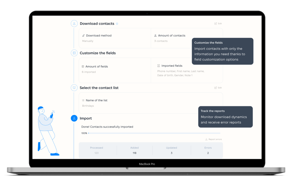 Без зусиль імпортуйте клієнтську базу даних та за лічені хвилини почніть розсилати цільові повідомлення.